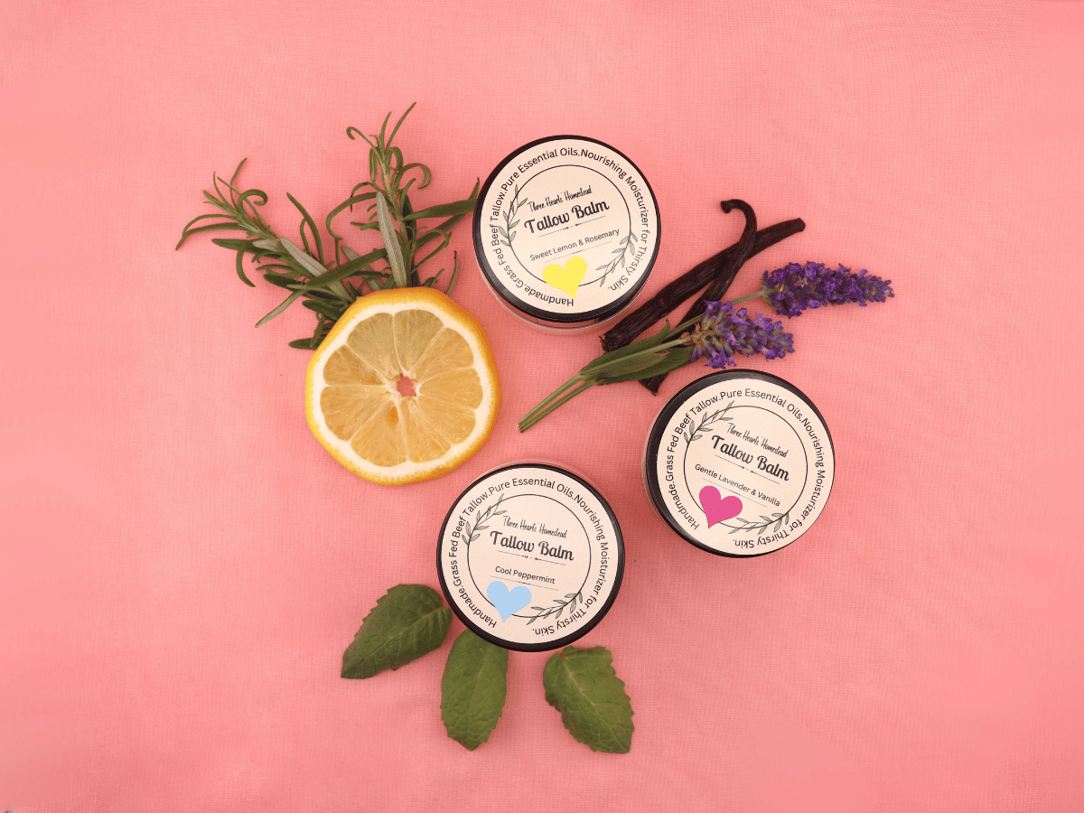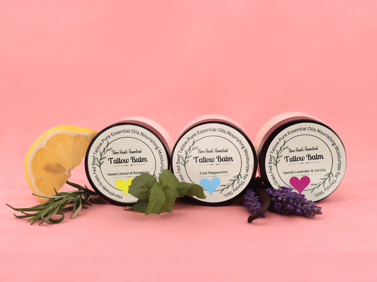 from 7 reviewsI purchased several tallow samplers as gifts for Christmas, and couldn't resist trying some out for myself. This tallow is amazing! The scents aren't overwhelming (lemon and rosemary, peppermint, and lavender vanilla). The texture is perfect (something hard to find in a good tallow!), soft enough for easy application but thick enough for dry thirsty skin. Service was great and packaging was lovely. I can't recommend Three Hearts tallow enough!